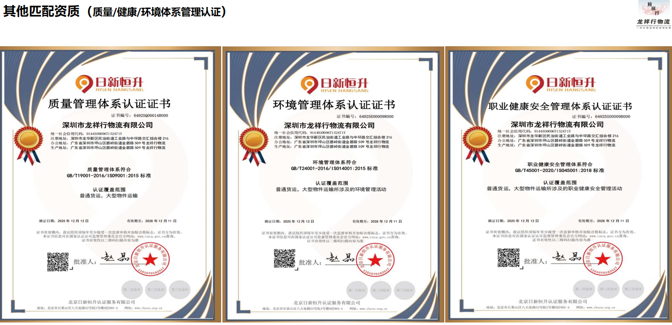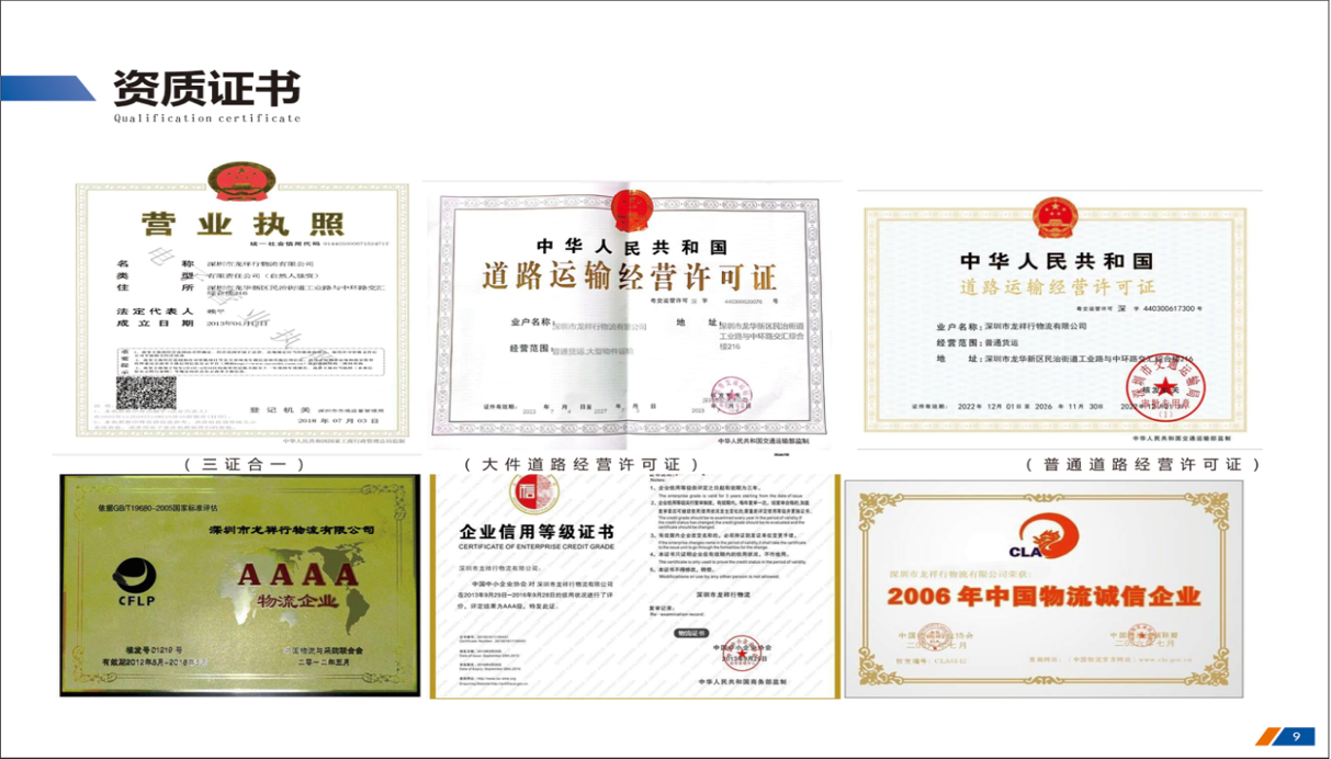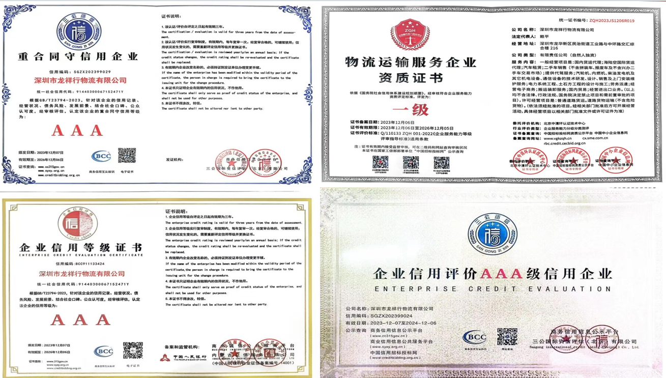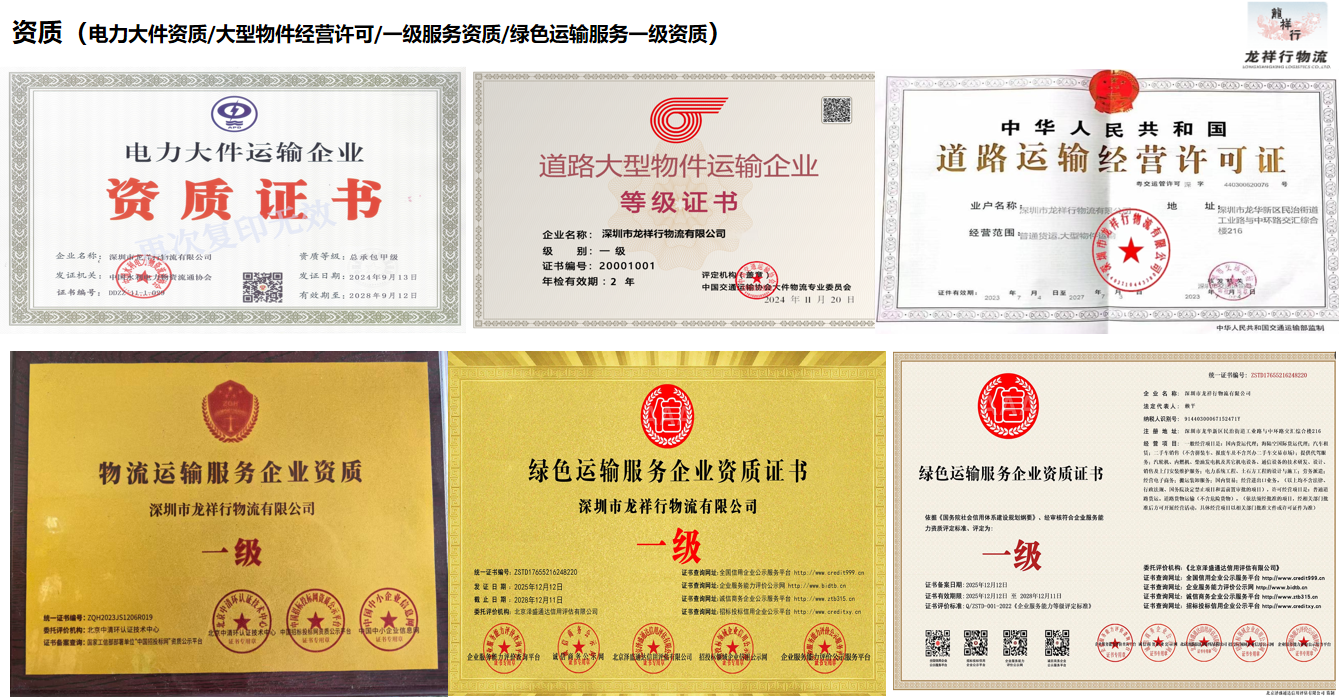 企业资质(管理体系认证/信用资质/电力大件资质、道路大型物件/一级服务资质/绿色运输一级资质)